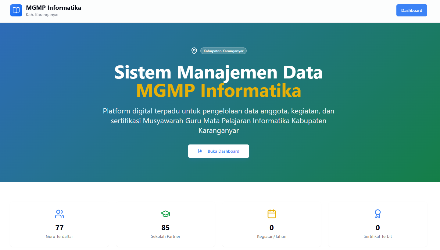 Dalam rangka memudahkan dalam manajemen data Anggota MGMP Informatika maka kami selaku pengurus telah membuat Sistem Manajemen Anggota MGMP Informatika.